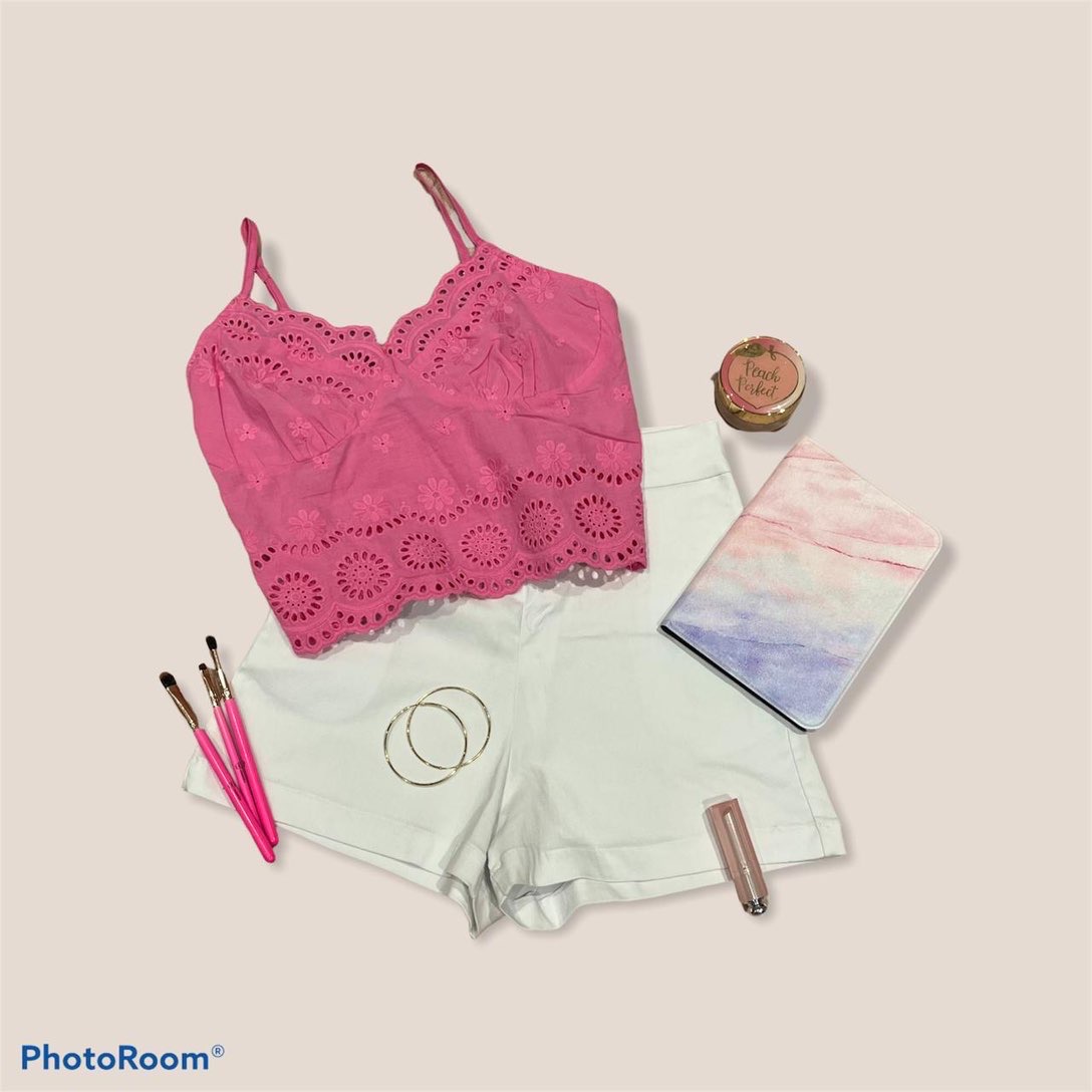 Crop top americano en ojalillo color fucsia.
