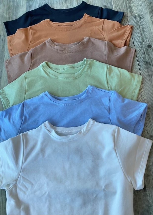 Set de pantalón y camiseta corta. Disponible en color blanco marfil y azul bebe en tela burda algodón amplio. No se vende por separado.
