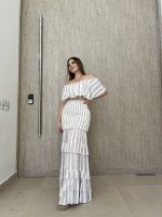 Set americano de crop top y falda estampada. Único color y estampado.