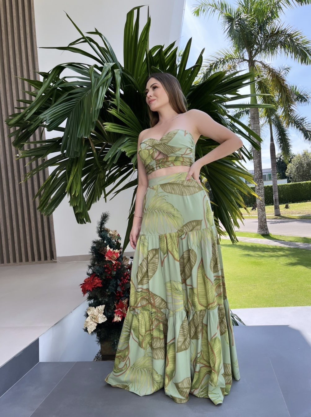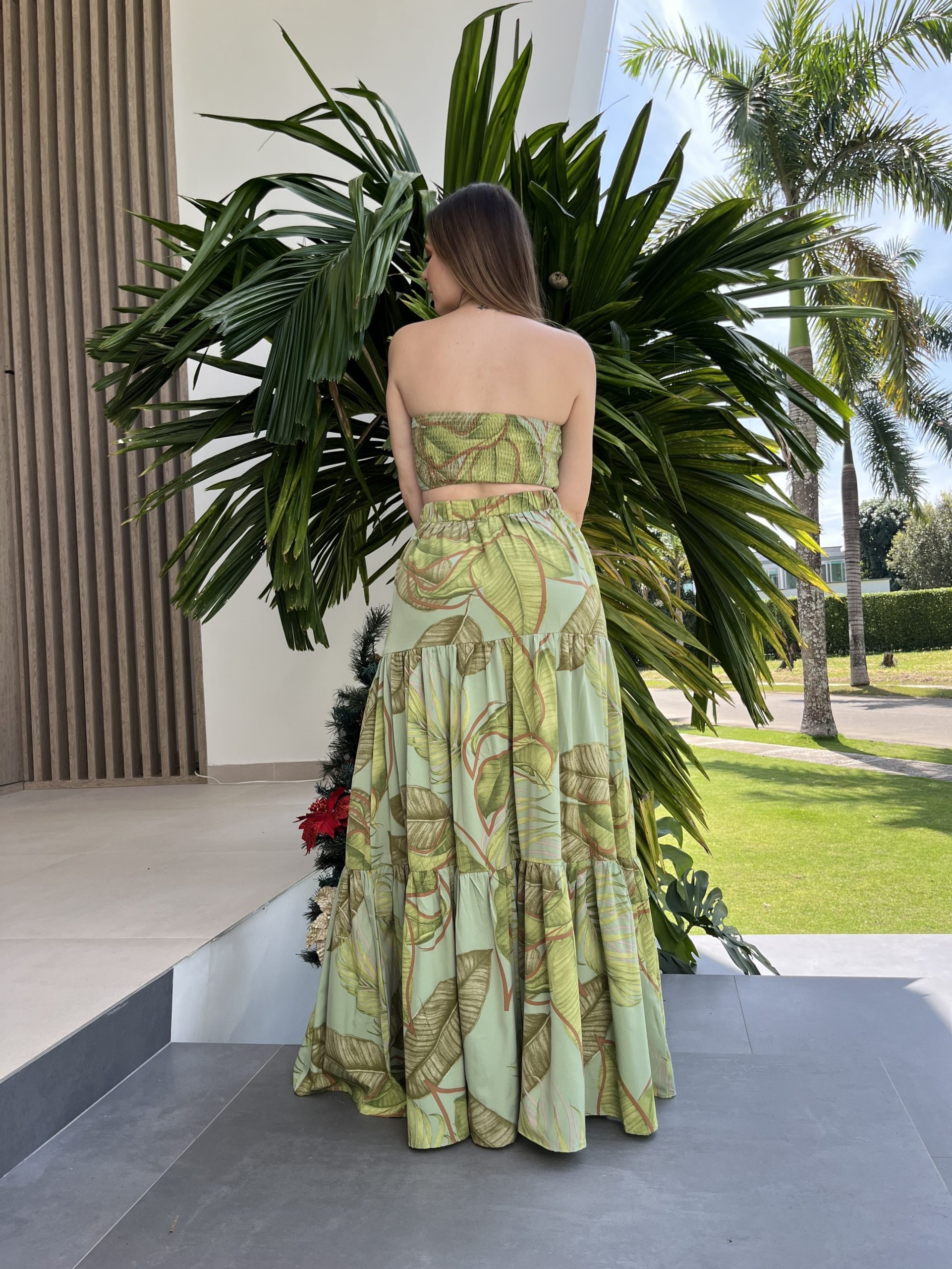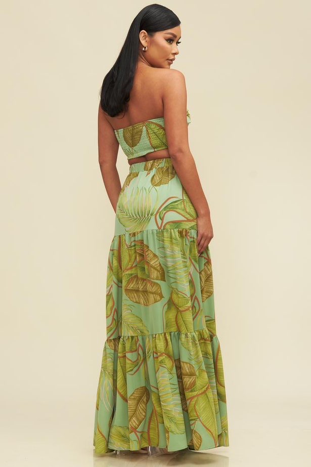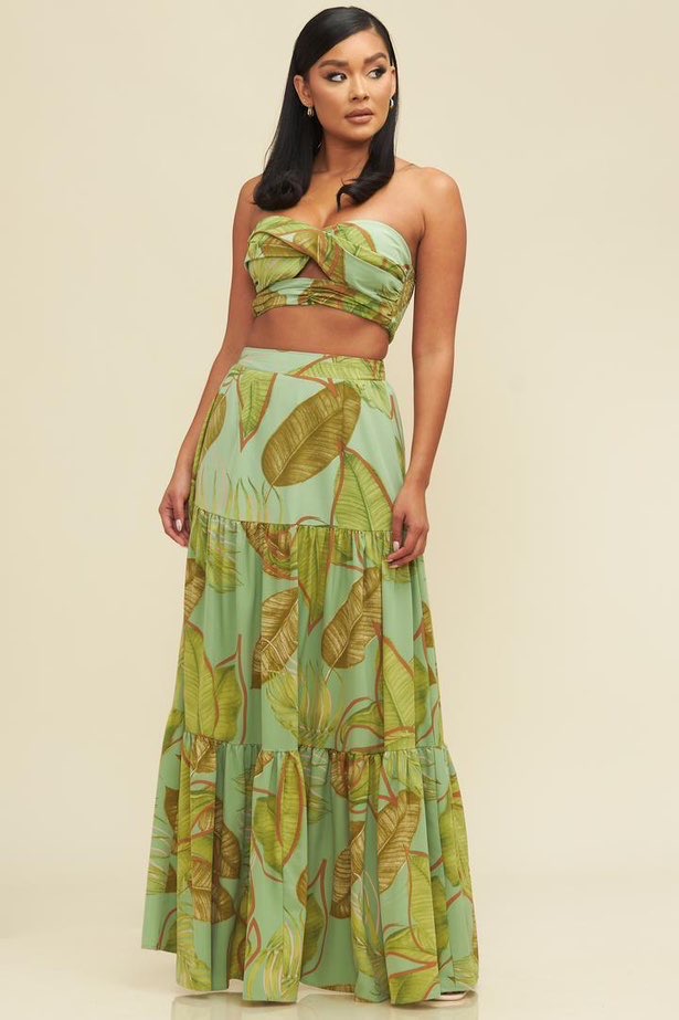 Set americano de crop top y falda estampada.