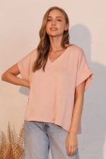 Blusa americana en tonalidad rosa champaña.