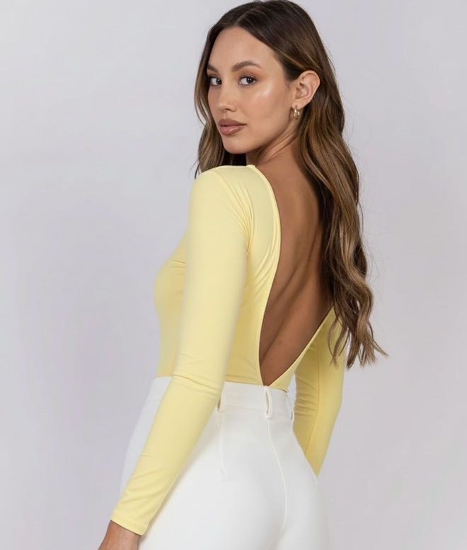 Body manga larga en licra disponible color amarillo mantequilla, negro, blanco y café.