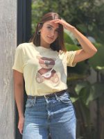 Camiseta en tela fría disponible en color blanco y amarillo mantequilla.