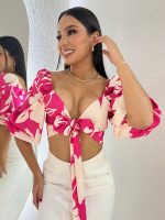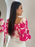 Crop top en tela blessed sublimado estampado color fucsia con nude. Talla única.