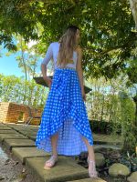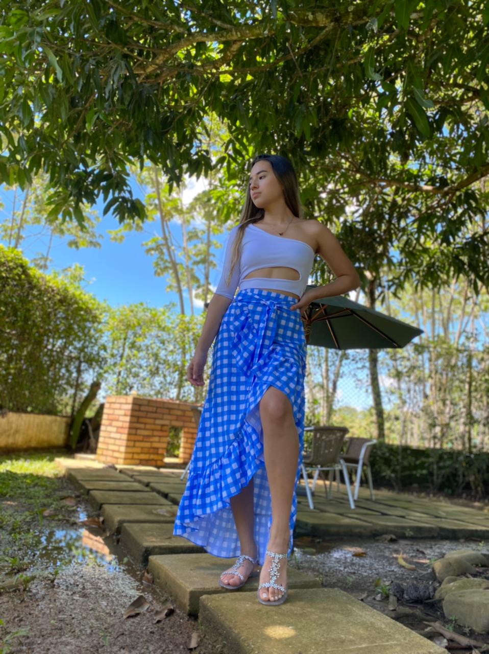 Falda larga de cuadros azul/blanco.
