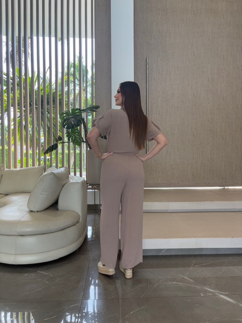 Jumper (enterizo de pantalon) americano disponible en color beige y morado pastel. Tela homa.