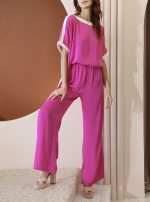 Jumper (enterizo de pantalon) color fucsia magenta en seda.