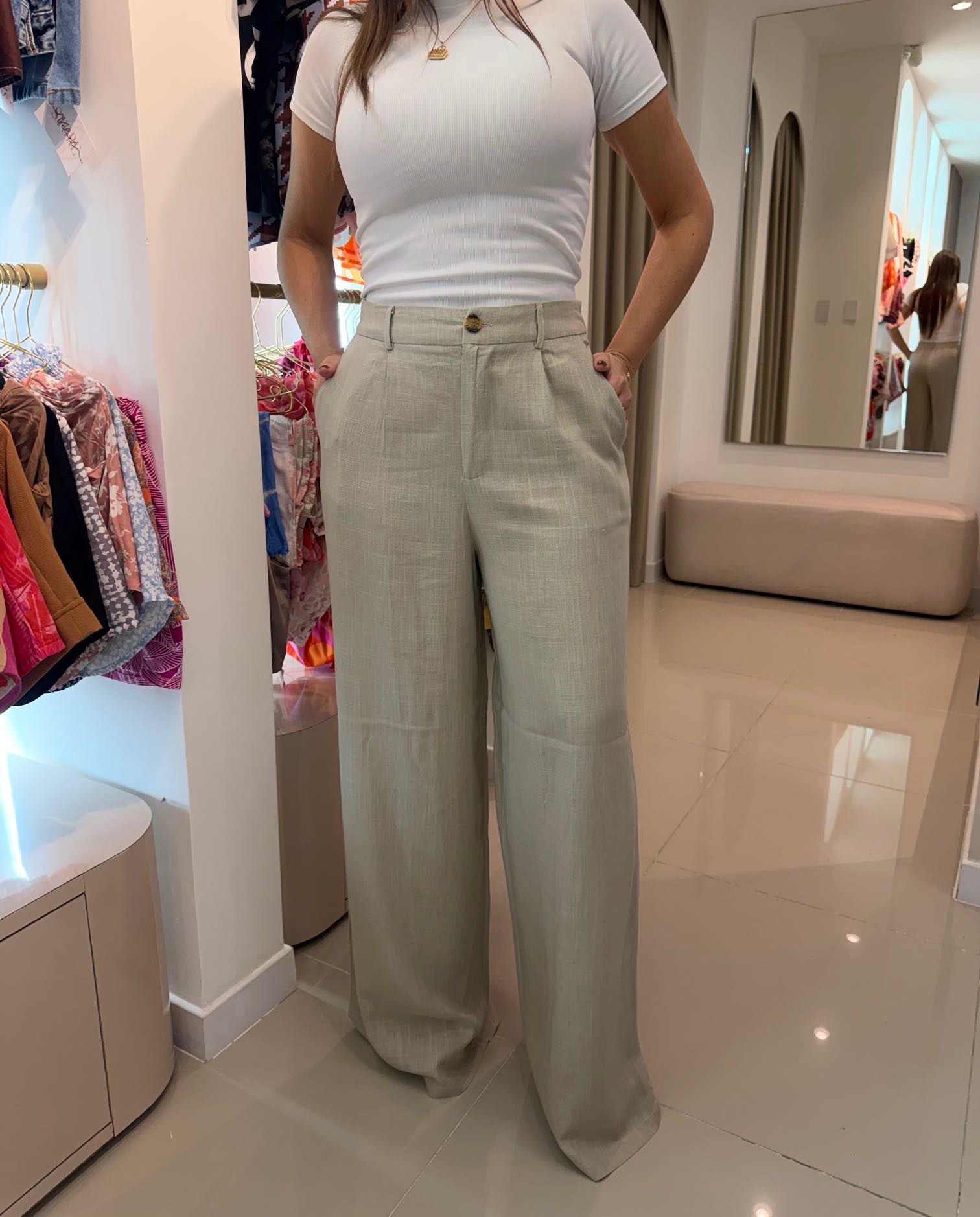 Pantalón en lino disponible en color beige.