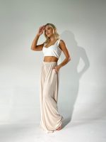 Pantalon palazzo en licra color nude. Crop top no disponible.