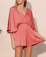 Romper (enterizo de short) americano en seda color coral.