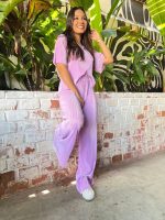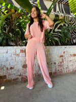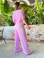 Set de pantalón y blusa en acetato plizado disponible en 3 colores.