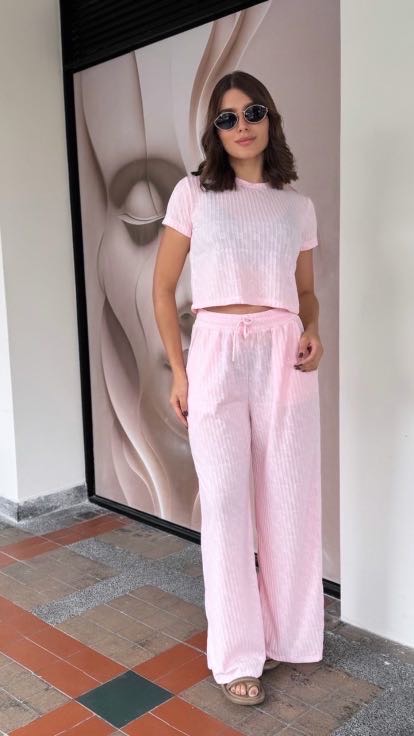 Set de pantalón y blusa disponible color azul bebe y rosado