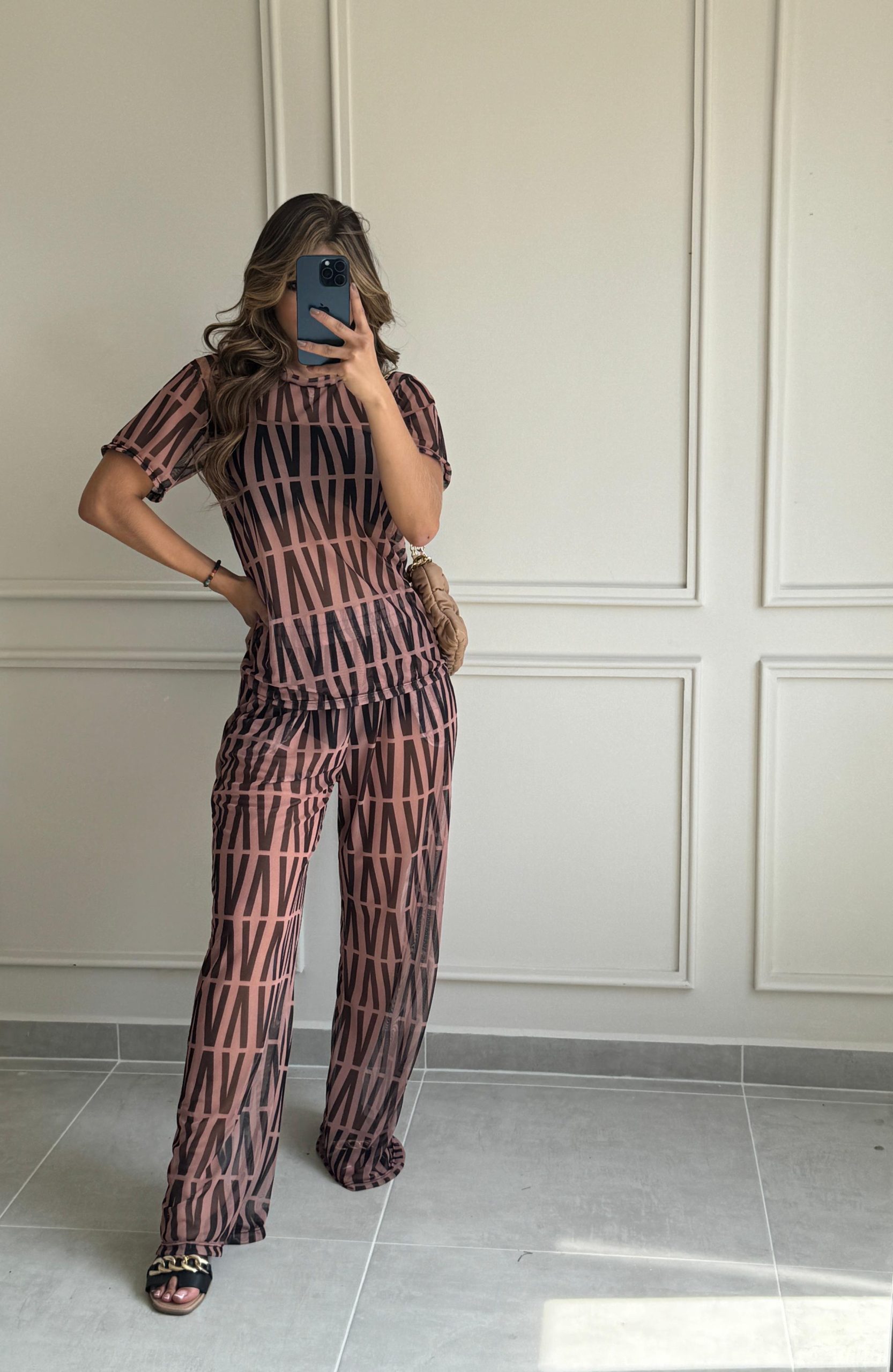 Set de 2 piezas: pantalón y blusa en mallatex incluye panty. Talla única.
