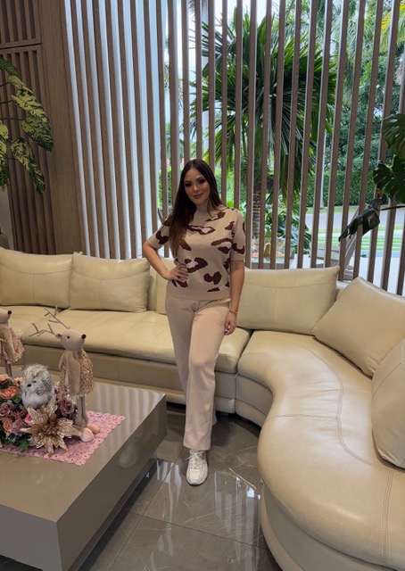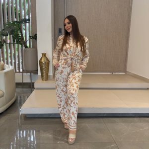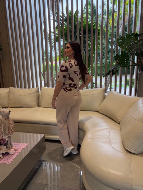 Set americano en hilo de pantalon y blusa con estampado animal print.