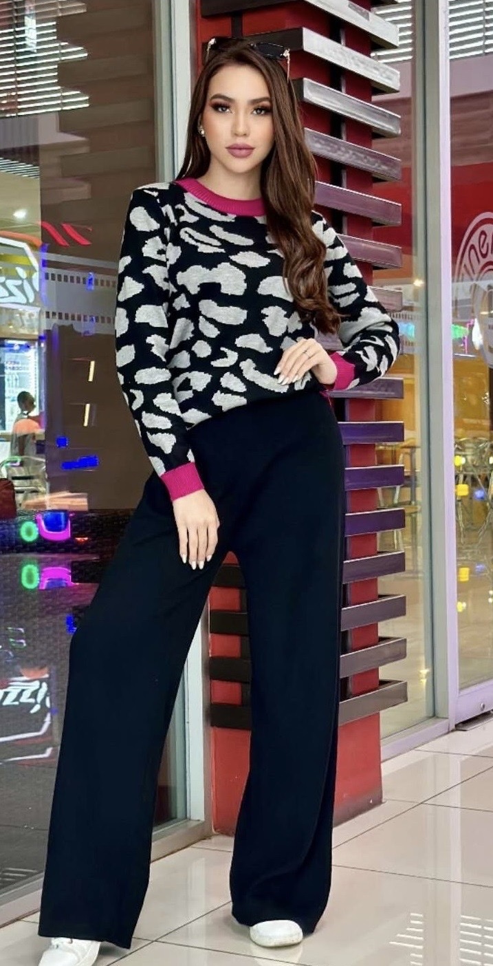 Set americano de pantalon y saco estampado animal print.