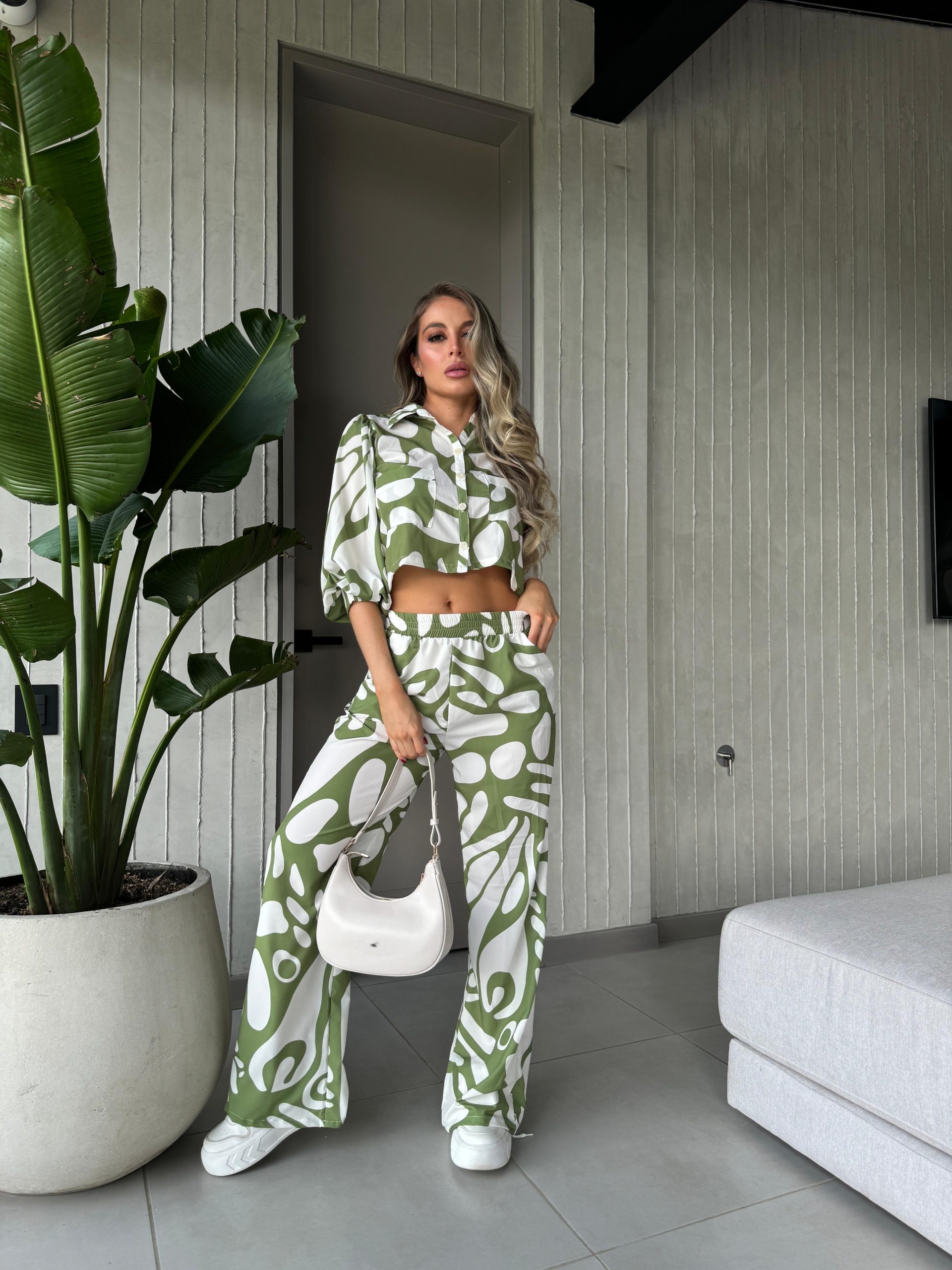 Set de pantalón y blusa estampado disponible en varios colores; talla única.