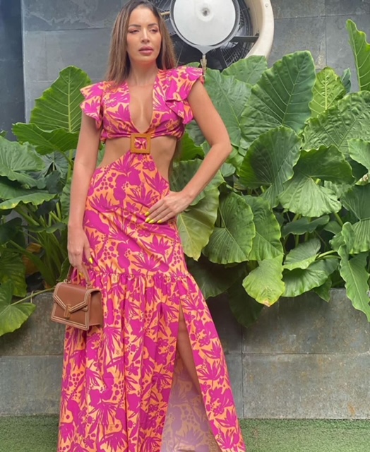 Vestido estampado con abertura únicamente talla S.