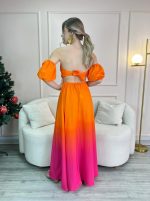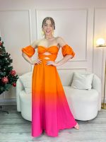 Vestido strapless en degrade de colores. Tela mango sublimada.