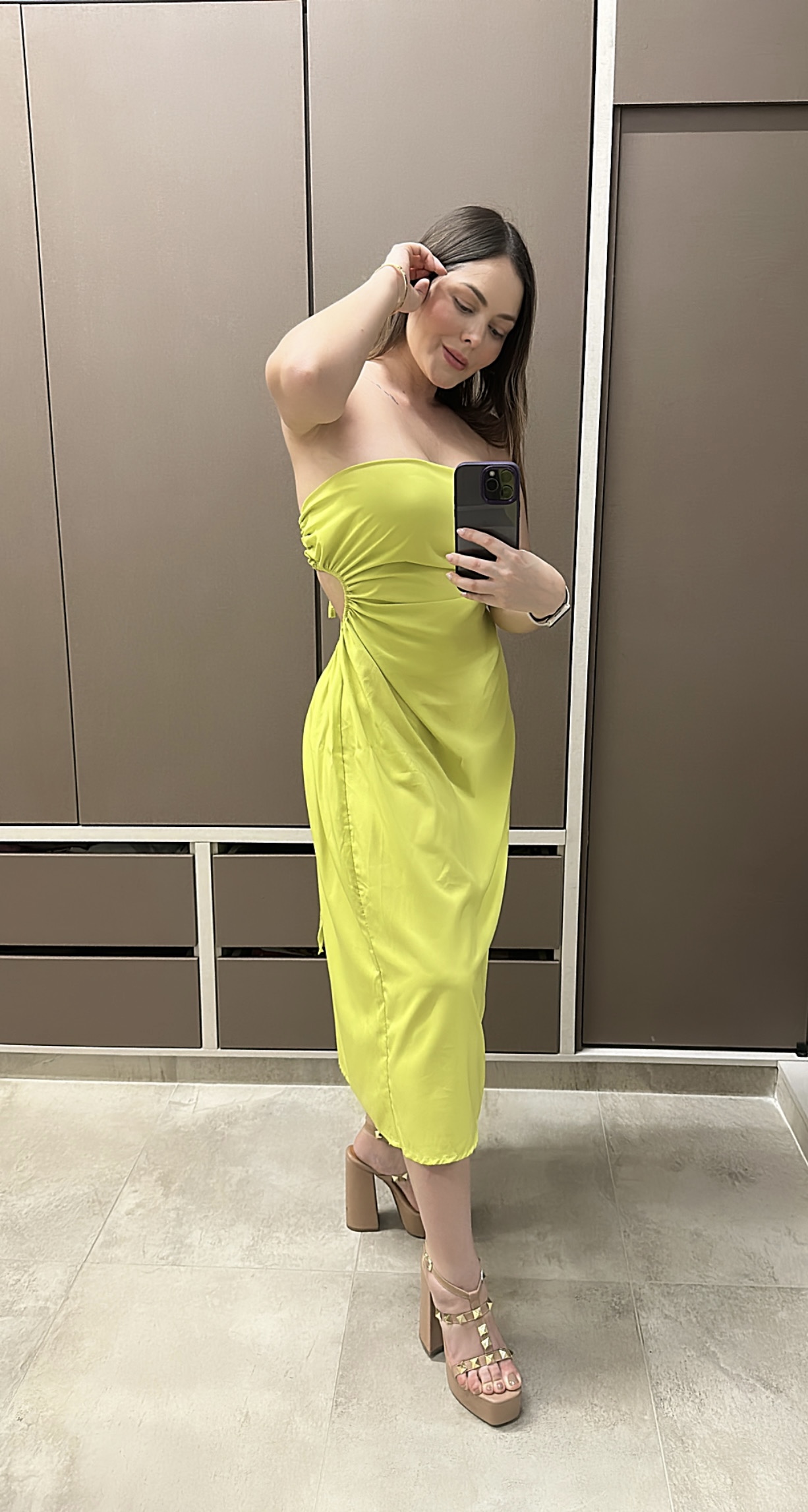 Vestido largo straple disponible en color verde pistacho.