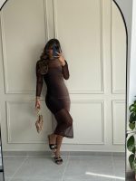 Vestido manga larga en mallatex. Incluye enterizo de short en lycra interno. Talla única.