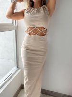 Vestido en rib algodón grueso 2*1 disponible en color cafe claro y nude. Talla única.