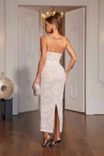 Vestido americano de lentejuelas y perlas color blanco.