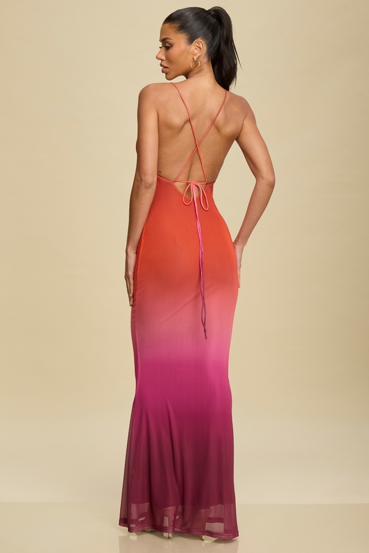 Vestido americano en degrade de colores en malla con forro.