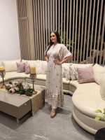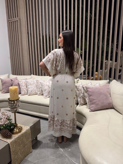 Vestido americano con estampado de flores en color blanco con beige.