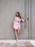 Vestido americano color rosa en algodón. Cinturón de colores agotado. Disponible una unidad color negro.